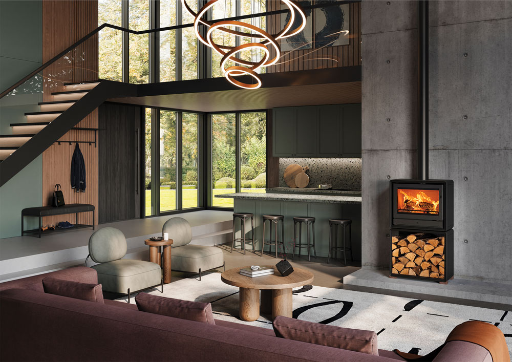 - Modern interiors pair beautifully with clean-lined, minimalist stoves or inset designs